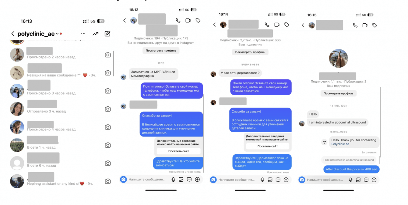 Кстати, обращения в директ разных языках, что лишний раз доказывает: продуманная стратегия на основе анализа позволяет работать со многими сегментами целевой аудитории.