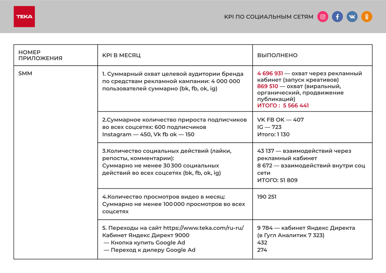Поставленные цели: повышение узнаваемости к бренду среди потребителей; увеличение числа подписчиков в 4-х социальных сетях. Настройка таргетированной и контекстной рекламы по KPI. Клиент обратился к нам уже с установленным KPI.
