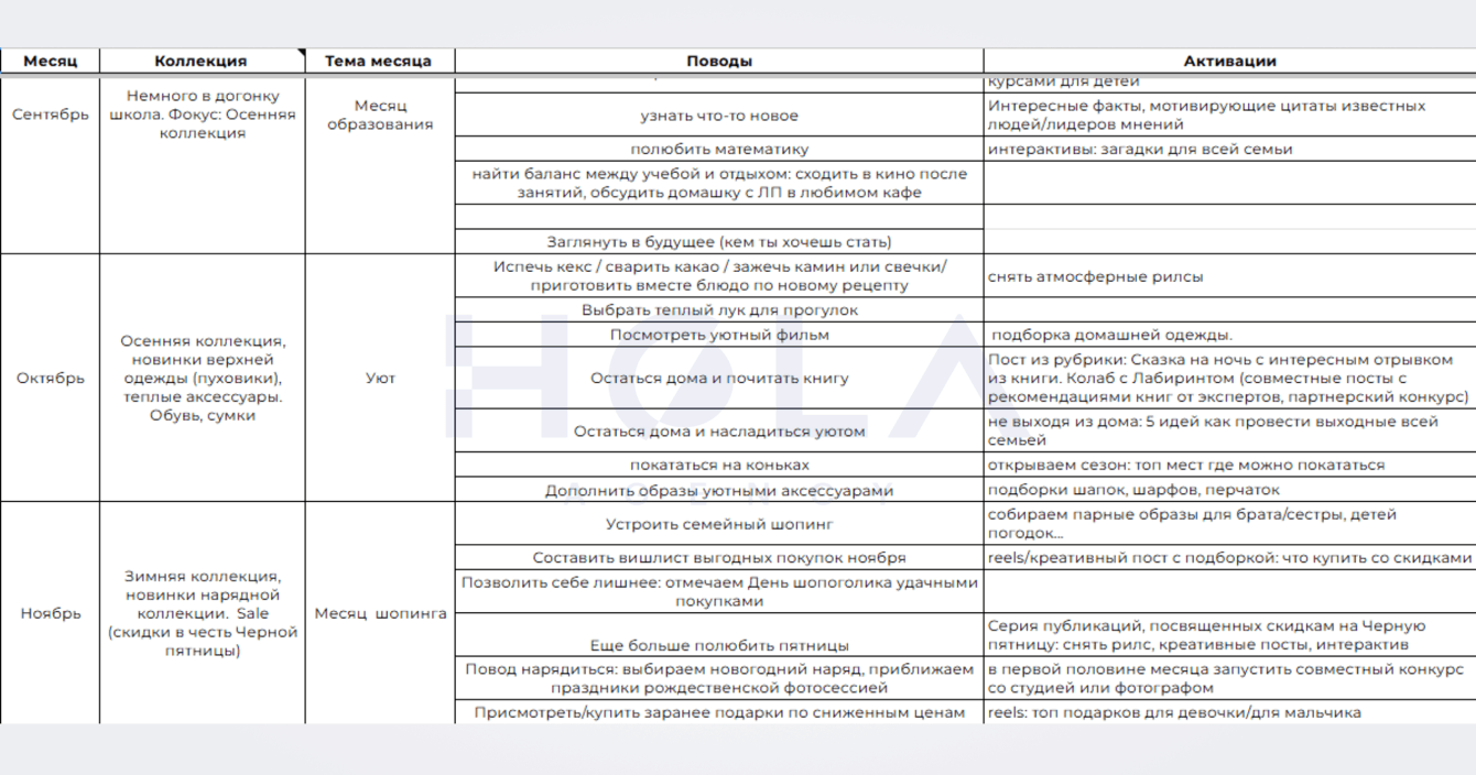 После того, как контент проверен, необходимо написать продающие и вовлекающие тексты, составить финальный контент-план, в котором будут обозначены конкретные даты публикаций в соавторстве с контент-мейкерами.