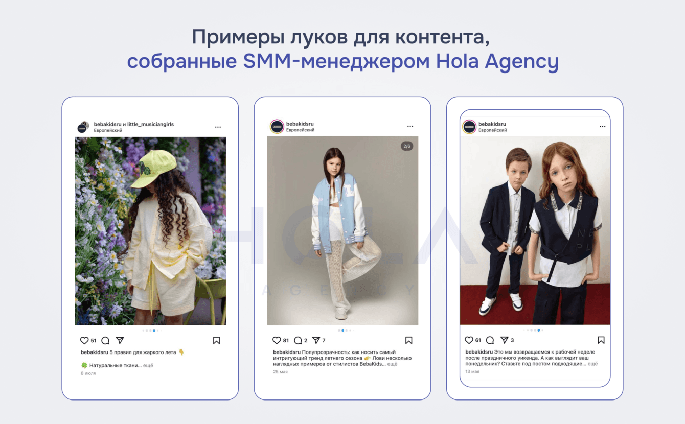 Необходимо заранее уточнить возраст, рост и параметры контент-мейкера, чтобы SMM-менеджер подобрал актуальные позиции ассортимента в наличии и с широкой размерной сеткой.