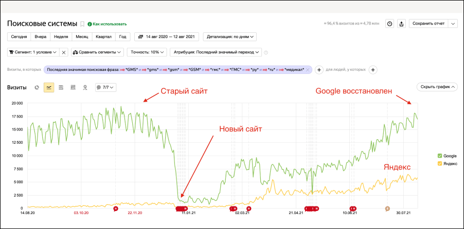 Помимо SEO и поддержки сайта, МедСпринт ведет рекламные кампании клиники в Яндекс Директ и Google Ads. Поэтому собранные сегменты ЦА помогут нам сформировать эффективную рекламную кампанию.