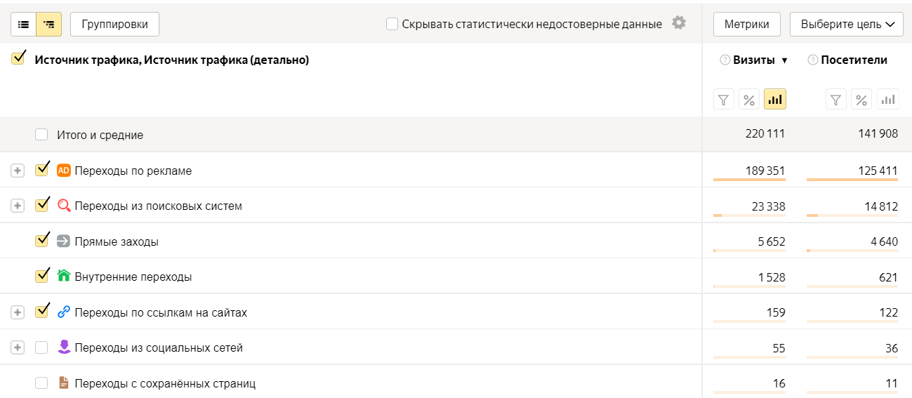 К сожалению, выбрать самые эффективные кампании не получилось, так как почти не было аналитики ─ клиент предоставлял нам только количество обращений на почту за месяц. Но в них могли входить как новые заявки, так и повторные, а также обращения от пользователей, которые попали на сайт из органической выдачи. Но в целом от 85 до 90% переходов на сайт было с рекламы.