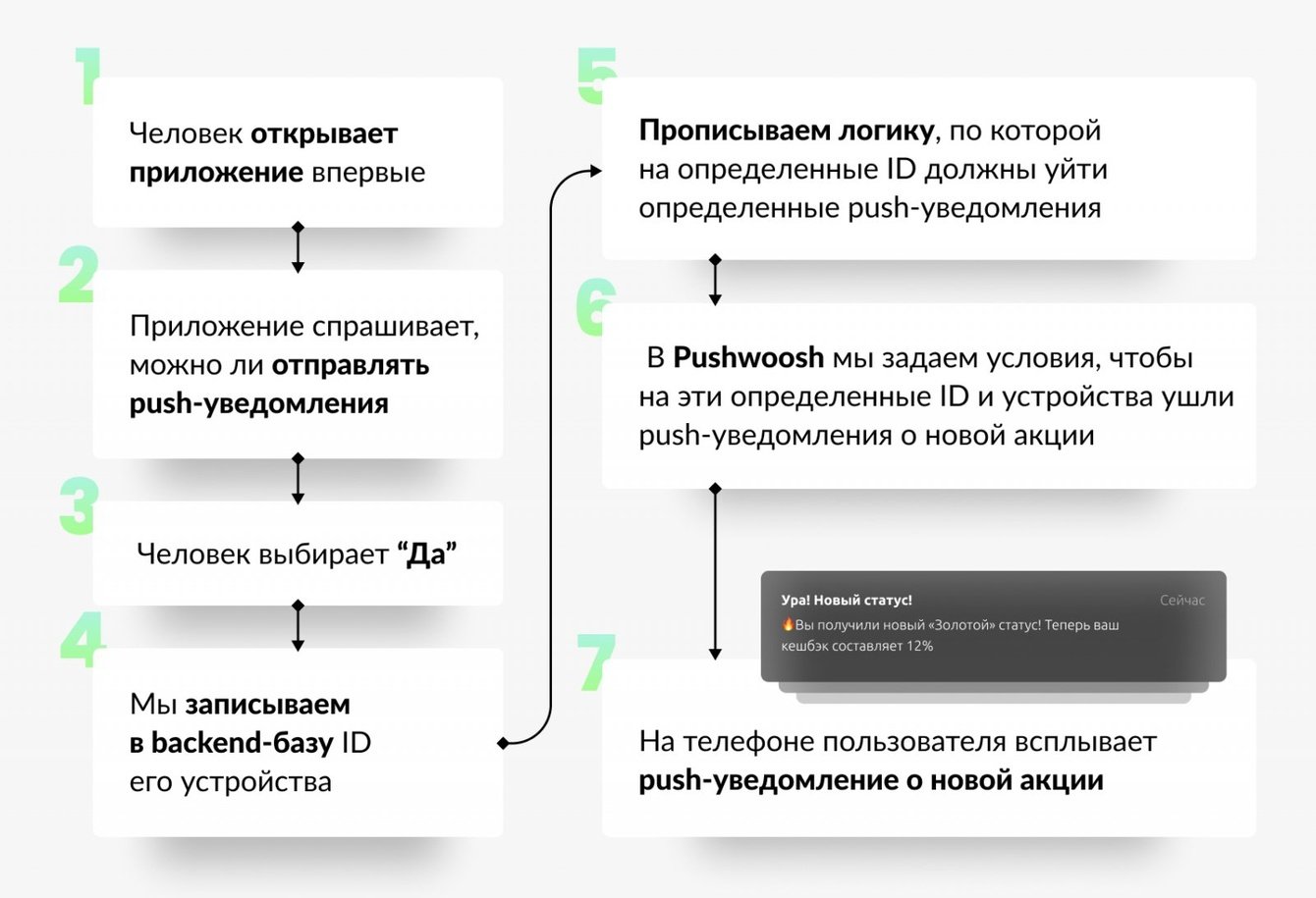 Например, бизнес-логика для push-уведомлений выглядит так:
