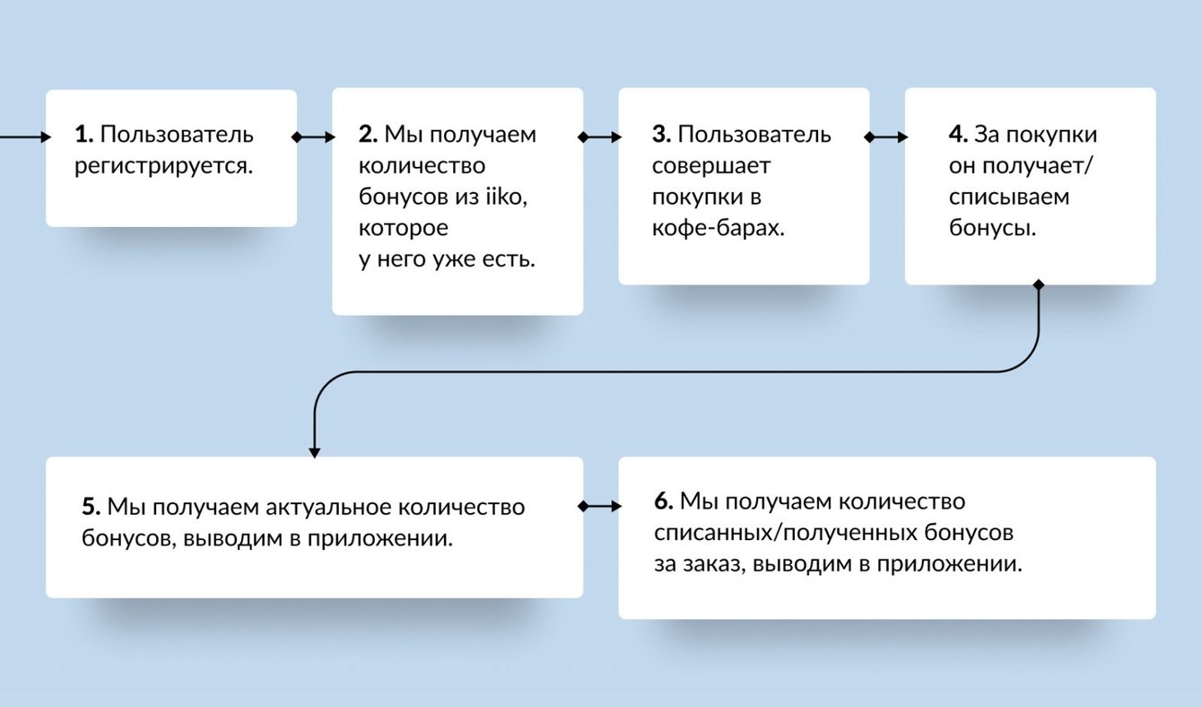 Информации в приложении много и она постоянно обновляется. Кофе-бары открываются по несколько штук в неделю и программа лояльности действует во всей сети. Поэтому мы интегрировались с iiko во всех возможных направлениях: