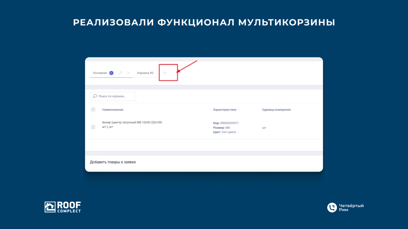 За два клика клиент может создать несколько корзин, в которых будут лежать разные товары. Для этого ему не надо искать их вручную — всё работает проще. Вверху страницы можно создать две-три и больше корзин, добавлять в них разные товары. В итоге получится несколько отдельных заказов.