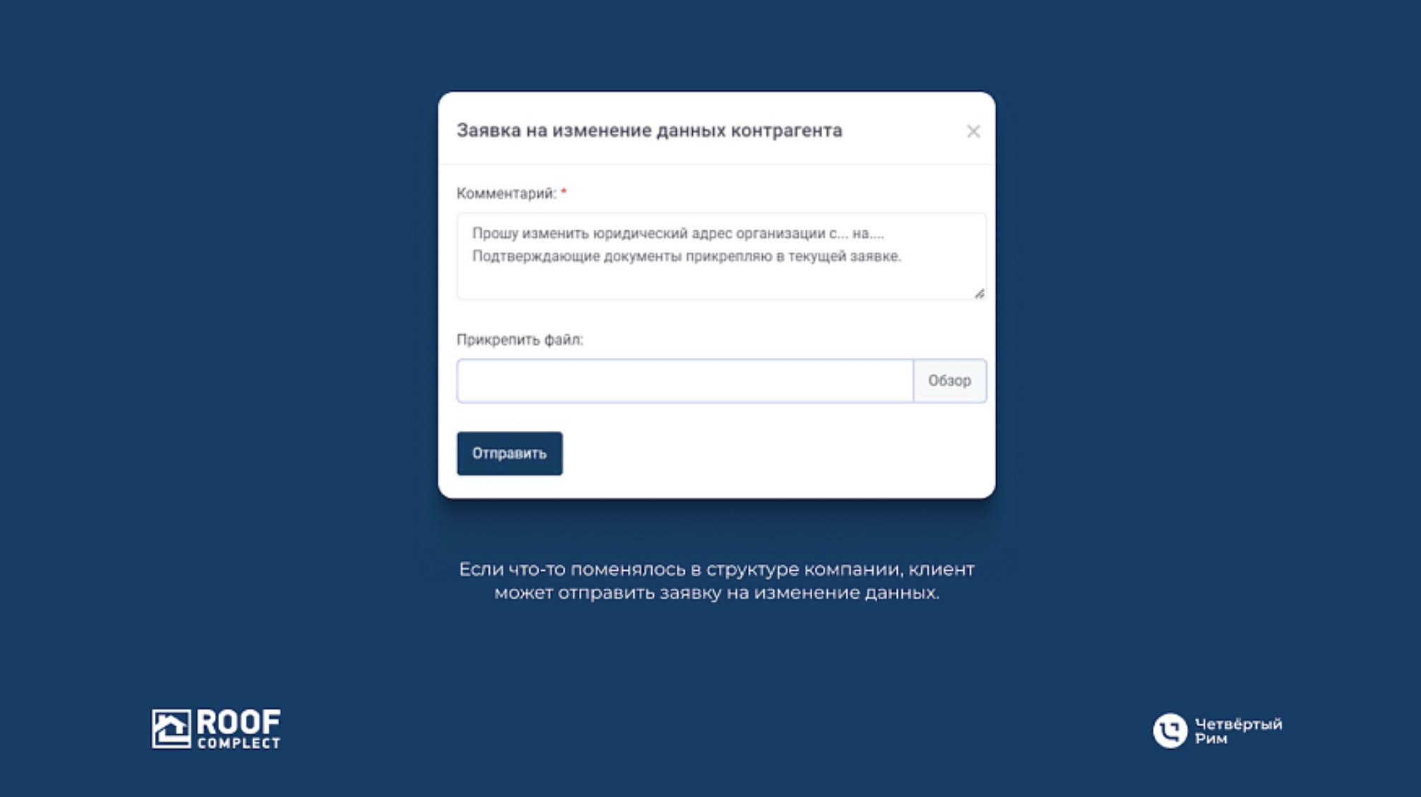 Если что-то поменялось в структуре компании, клиент может отправить заявку на изменение данных.