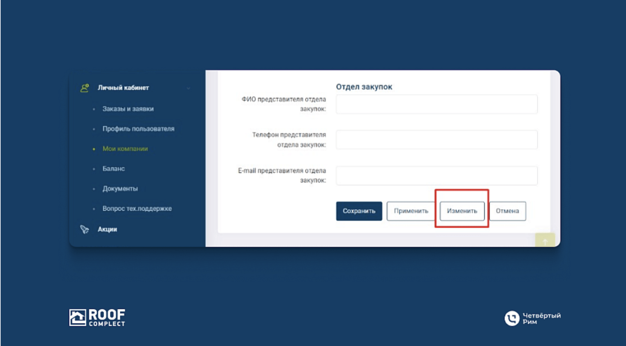 Компания обратилась к команде «Четвёртый Рим», чтобы сделать процесс проще и для себя, и для клиентов. Мы предложили внедрить на сайт личный кабинет покупателя. Через него пользователи смогут самостоятельно оформлять заявку на покупку, а менеджеры — направлять счета.
