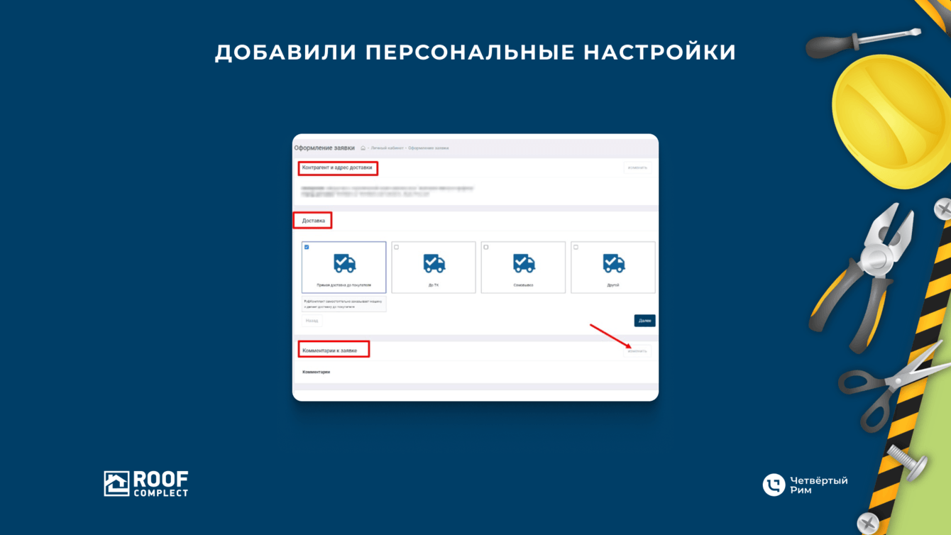 Сделали индивидуальную настройку параметров заказов: дата, время отгрузки и способ доставки. Так компания экономит время на рутинных процессах по уточнениям в заказе.