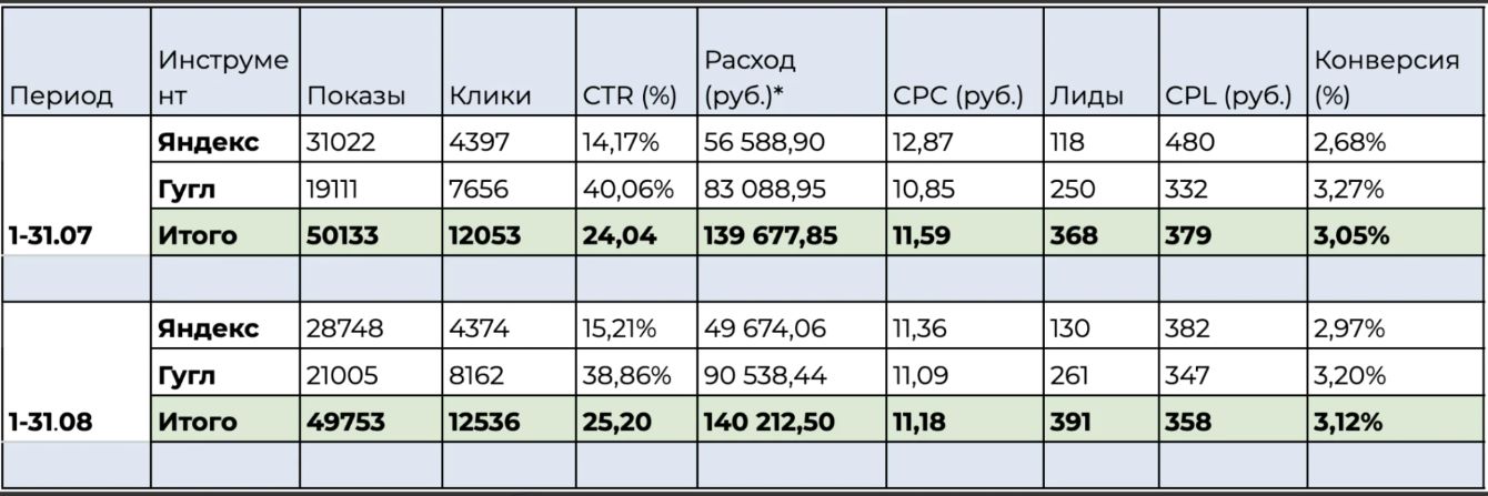 До нас контекстная реклама была убыточной: приводила в среднем 130 заявок по 1200–1797 рублей.