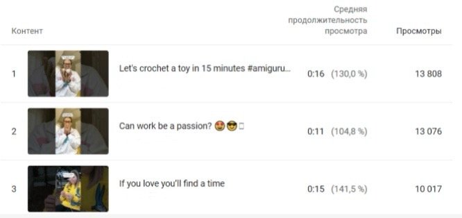 Так выглядели просмотры и средняя продолжительность до начала работы: