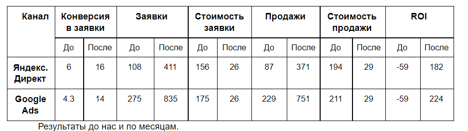 Предыдущее агентство подключило кампании на Яндекс.Директ и Google Ads. Положительный ROI был только по брендовым запросам, коммерческие запросы работали в минус.