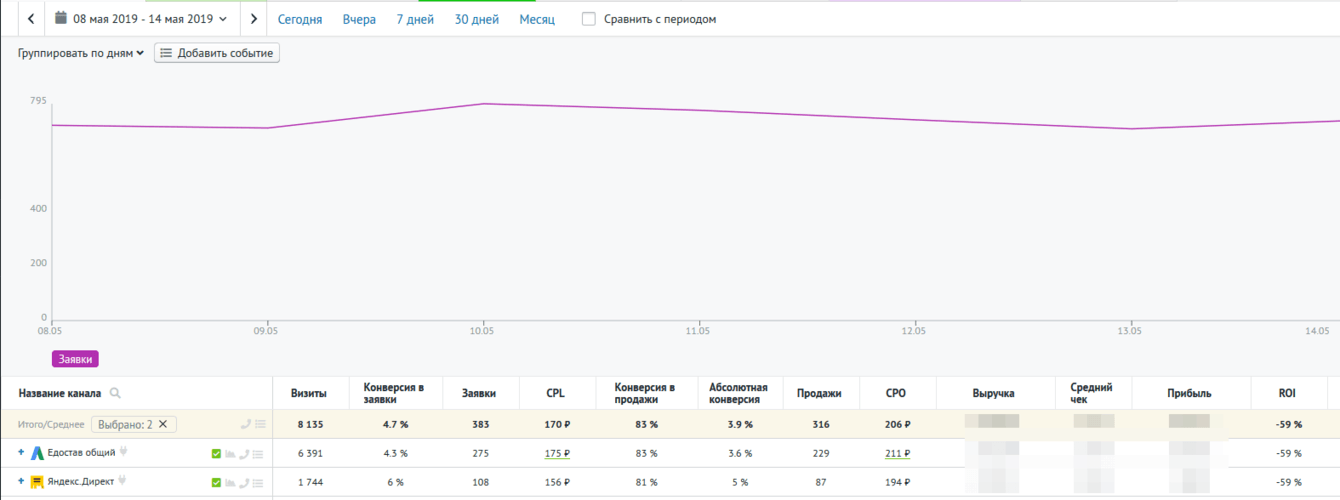 Уже была подключена сквозная аналитика Roistat, что дало достаточно данных для принятия решений.