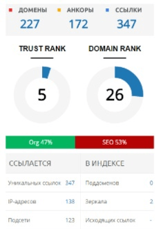 Помимо внутренней оптимизации, важным фактором ранжирования является наличие качественных внешних ссылок на сайт. Проанализировав ссылочный профиль, я выявил следующие показатели: