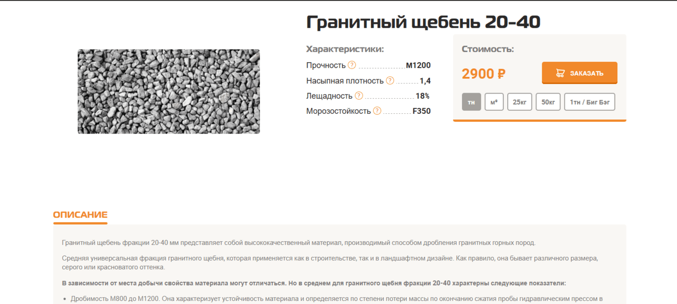 2. Карточка товара "Щебень гранитный фракции 20-40 мм":