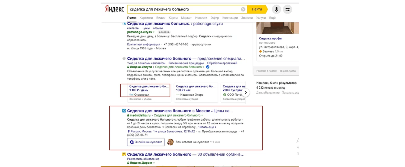 Аналогично, присутствие в Я.Услугах — дает возможность показываться не только в блоке выдаче, но и в блоке Я.Услуг: