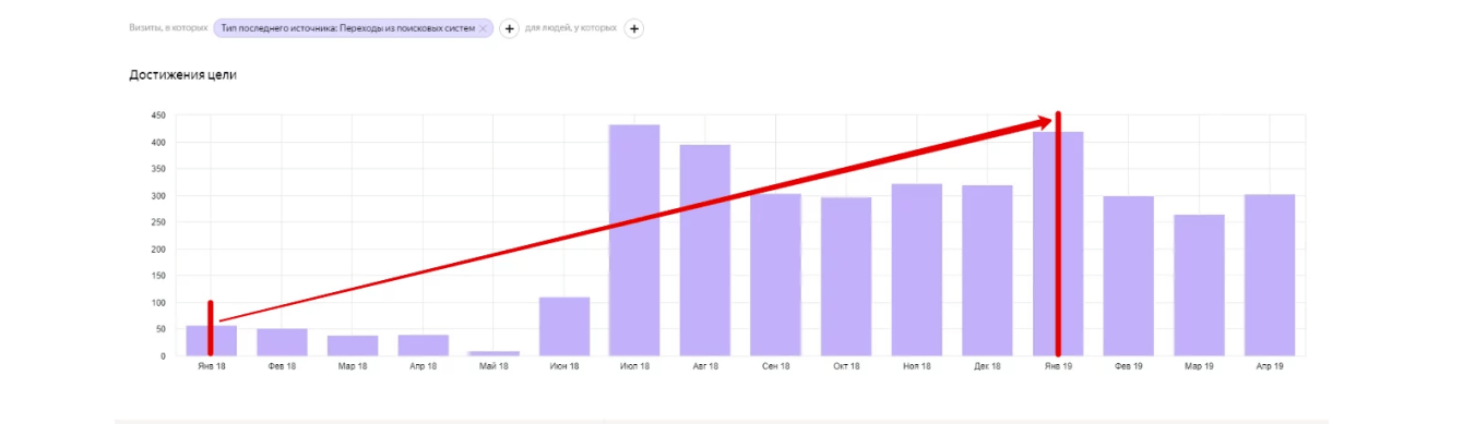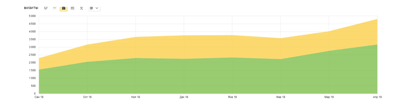 Проведенные работы не просто привели к прогнозируемым результатам в виде роста трафика, который от изначальных 1000 визитов преодолел порог в заветные 4000 по итогам апреля 2019 года (если быть точнее 4818, что составило 160 в день), что в практически 5 раз выше начальных показателей.