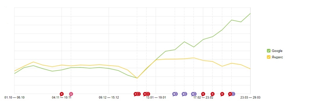 Аналогичная динамика позиций для Яндекса представлена ниже: