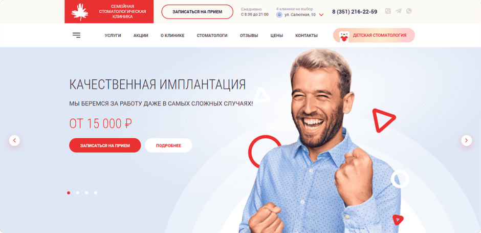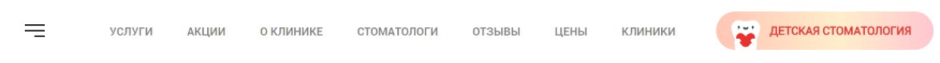 На главной странице закрепили шапку и добавили кнопку с переходом на детскую стоматологию.
