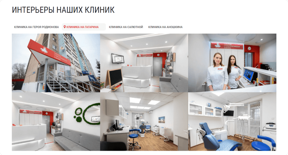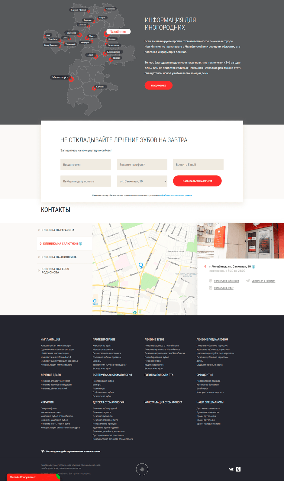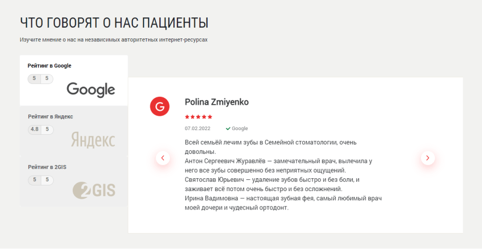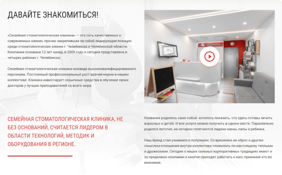 — третий блок — цитаты руководителя и главного врача. Неплохая идея. Но для повышения доверия, лучше использовать отзывы;