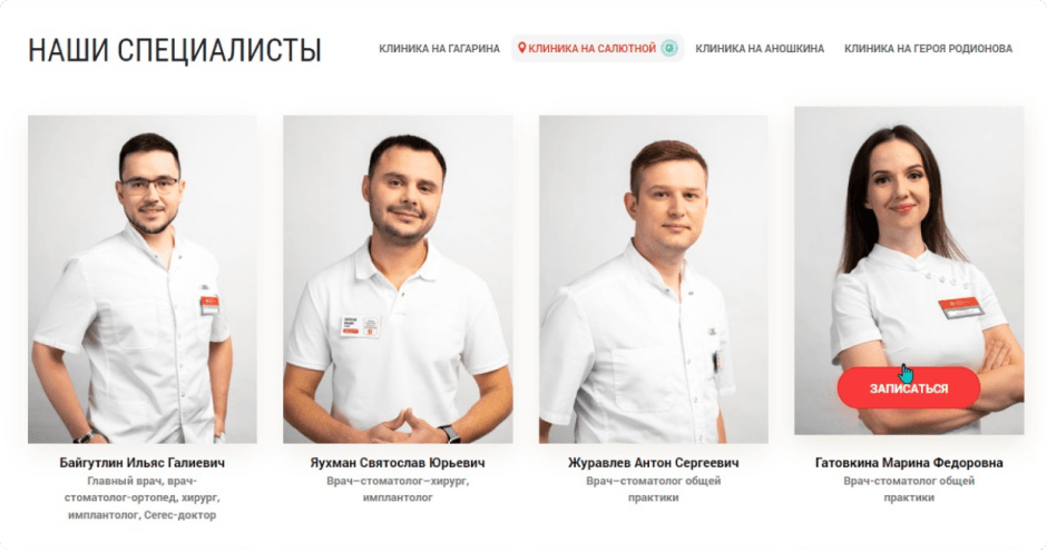 Добавили возможность выбрать клинику и записаться к конкретному врачу.