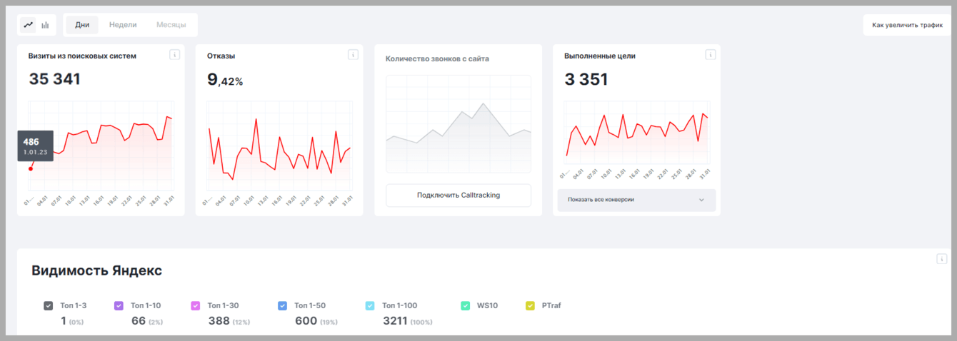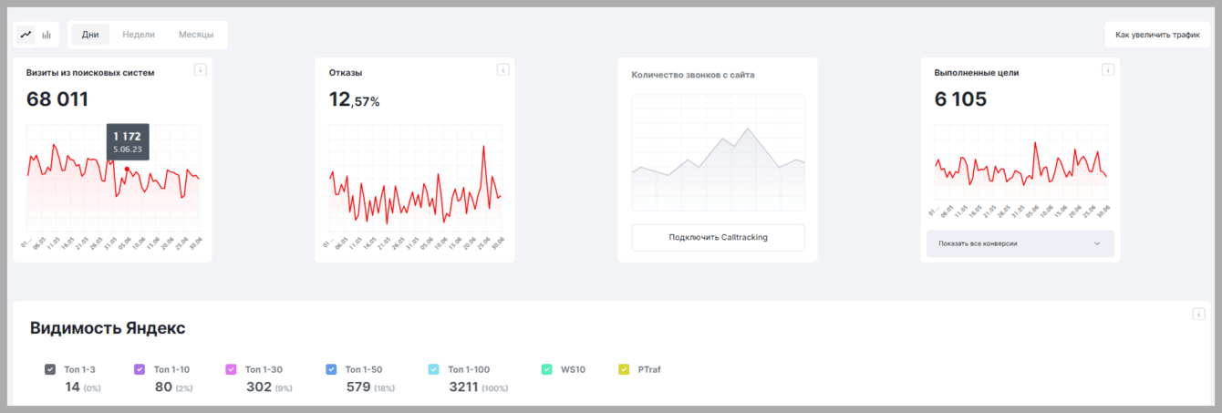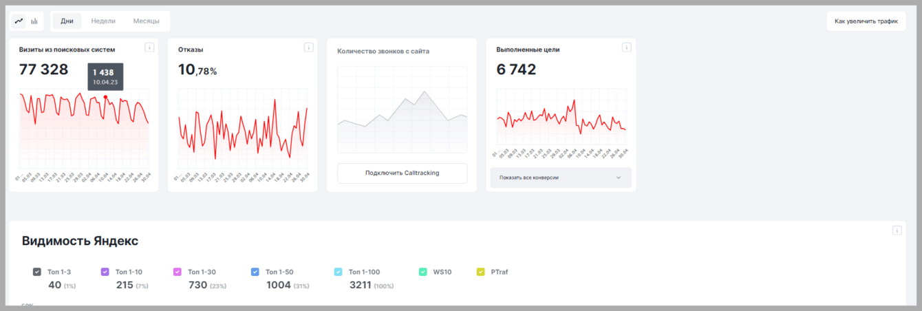 5) Увеличение целевого трафика на сайт стоматологии в 2,5 раза после завершения основных работ;
