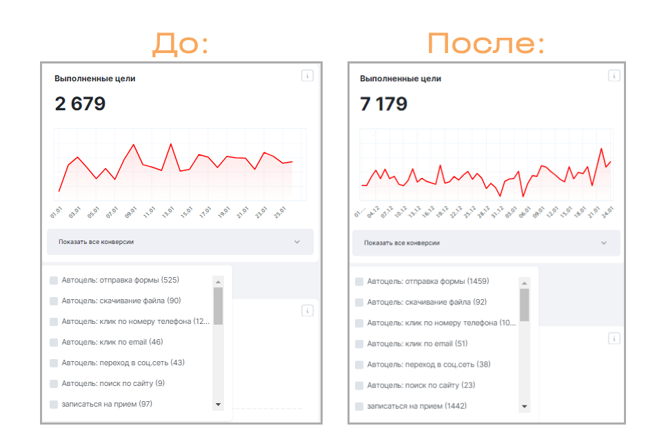 Рост целевых действий на сайте: с декабря 2022 по январь 2024: