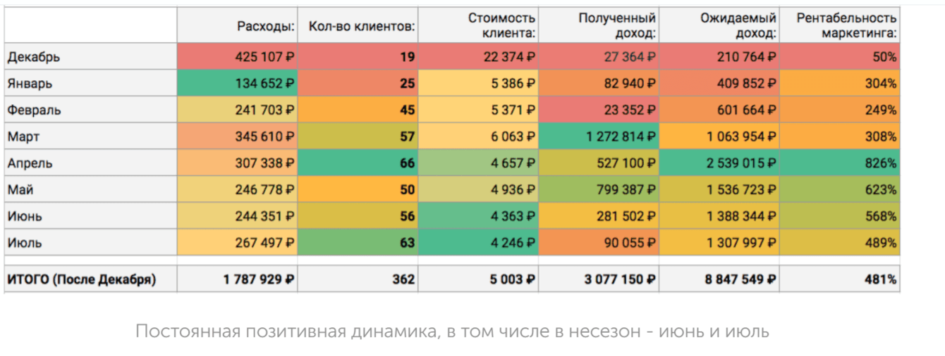 Конечно это повысило зарплатный фонд: вместо 13 тысяч в месяц менеджеры стали получать 20-35. Однако, выручка с клиентов, которых они стали активнее доводить до визита в офис, намного окупала зарплаты.