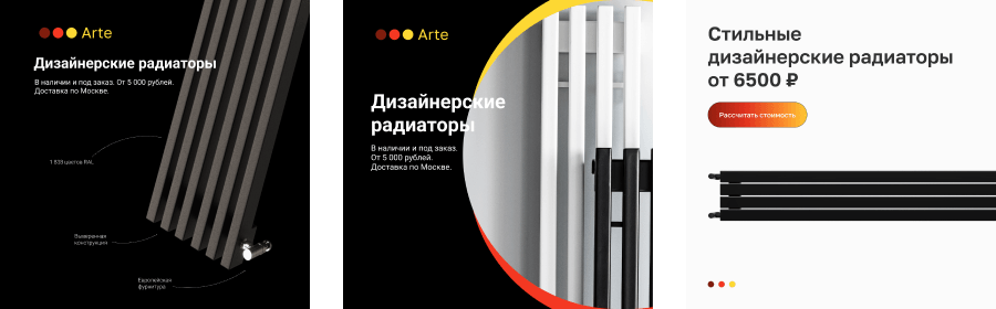 Чтобы сделать статичные баннеры для рекламы радиаторов мы использовали разные форматы: