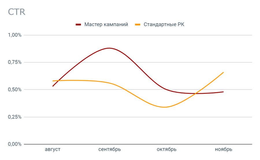 График сравнения CTR мастера кампаний и РК по ключевым запросам