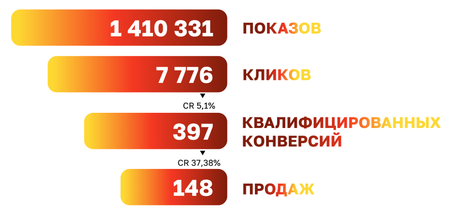— Средний расход по группе конкурентов 1,5 млн. руб. — это дало нам понимание какой нужно выделить бюджет, чтобы занять значимое место в нише