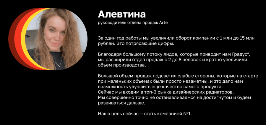 Вместе с borevich.agency° с нуля раскачали маркетинг в направлении «дизайнерские радиаторы». То есть был реальный 0 рублей, стало — на уровне ведущих конкурентов. У нас не было ни посадки, ни кампаний, ни концепции. Зато были трудности: ковид, внешнеполитическая ситуация, тяжелые настроения у целевой аудитории. Ребята нам на протяжении 3-х предыдущих лет помогали развивать направление твердотопливных котлов, работать было комфортно, за что мы благодарны и мы периодически говорим им об этом