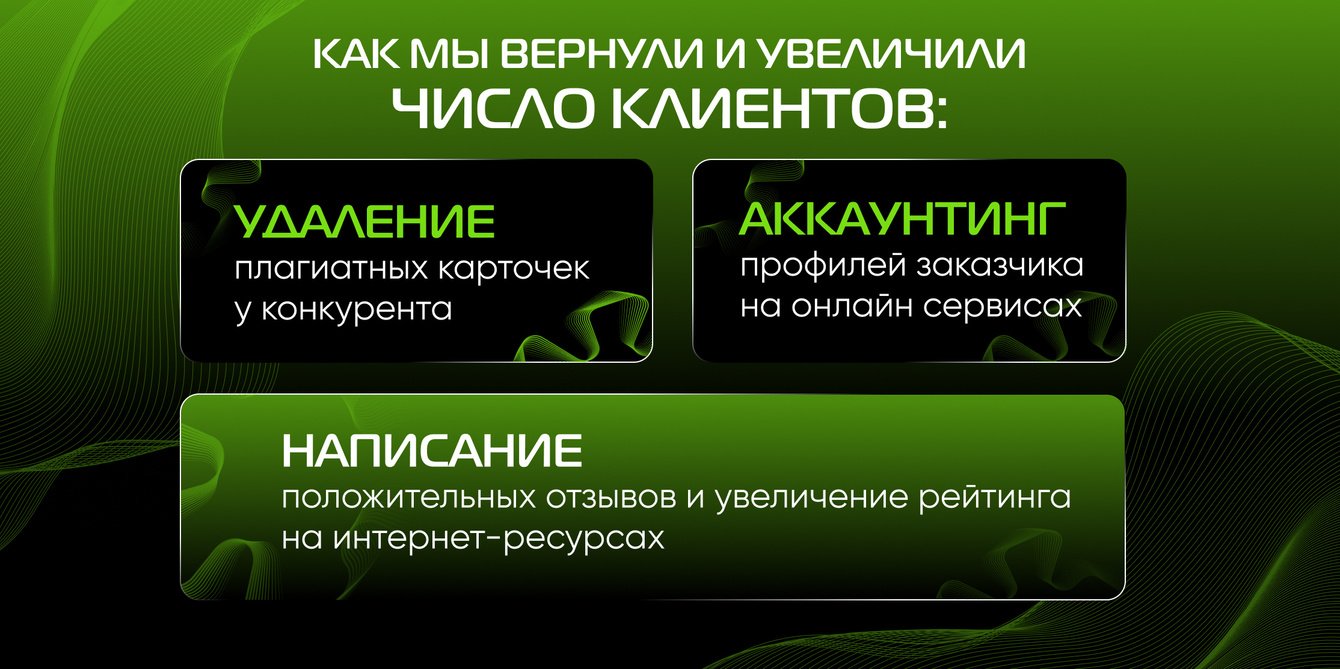 VICTORY group провела очистку поддельных карточек, защитила профиль клиента от атак и провела ряд мероприятий по восстановлению репутации клиента.