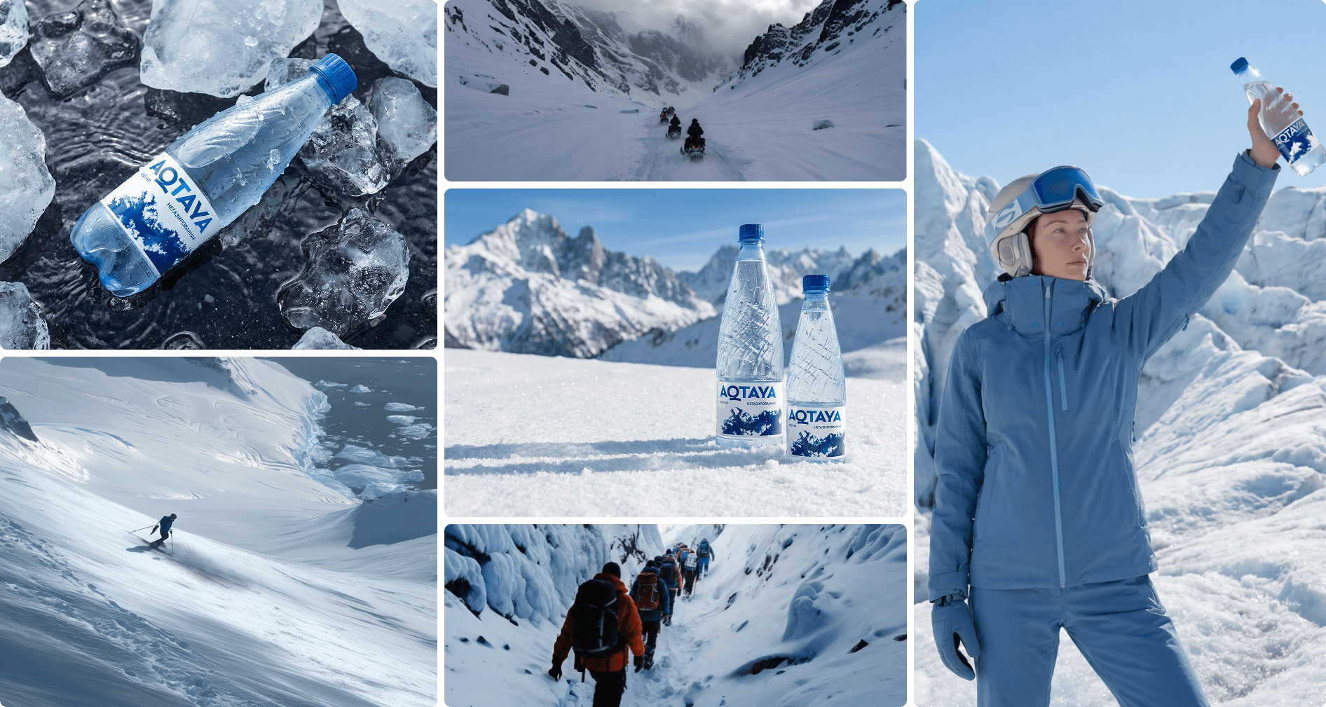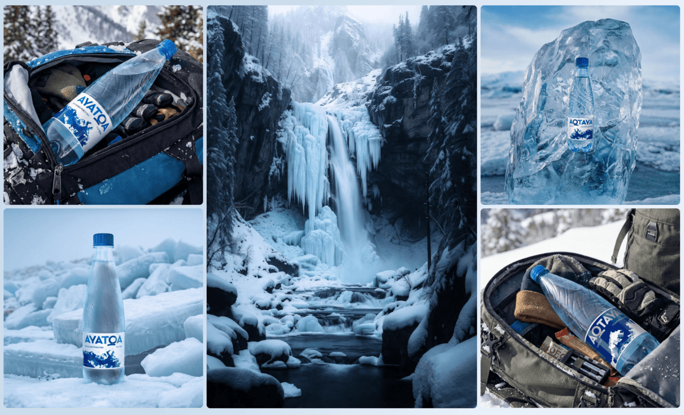 Особенность проекта в том, что практически все изображения на сайте сгенерированы. Они помогли создать целостный визуальный язык и передать ценности бренда воды AQTAYA: спокойствие, баланс, ощущение чистоты и внутреннего вдохновения.