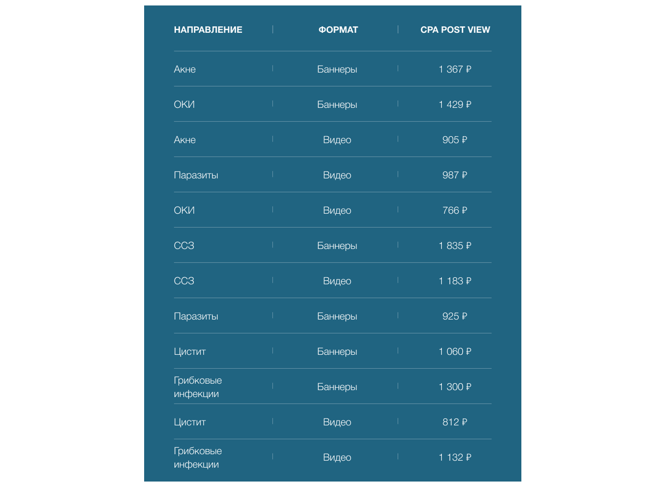 Можно заметить, что практически для всех направлений видеоформат был более эффективным с точки зрения стоимости конверсии. Учитывая, что сами креативы в видео представляли собой анимированные мастер-баннеры, можно говорить о том, что дело именно в формате.