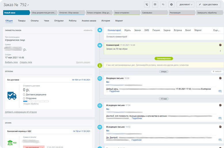 ● В облачной версии были настроены некоторые бизнес-процессы, но они работали неполноценно. Требовалось интегрировать заказы с сайта в CRM.