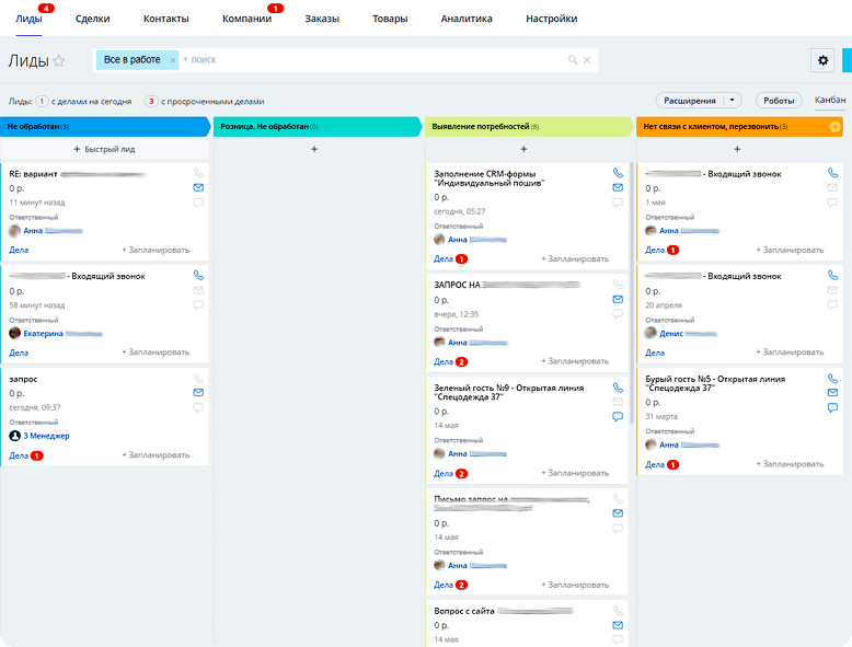 ► Появилось удобное ведение лидов и заказов по воронке продаж
