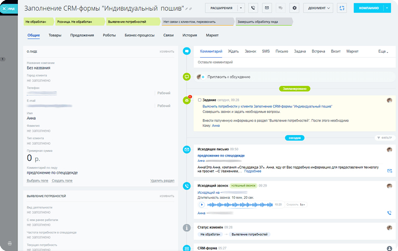 Реализовали поступление заявок с сайта и почты в CRM