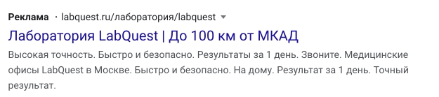 Проблем с модерацией в Яндексе не возникло. На общение с поддержкой Google ушло примерно две недели. Рекламировать медицинские услуги в Google запрещено. Именно поэтому не получалось пройти модерацию. Решение нашли в том, чтобы рекламировать не услуги, а саму медицинскую лабораторию. То есть услуги не должны выступать объектом рекламы, хотя можно показывать объявления по любым ключевым словам.