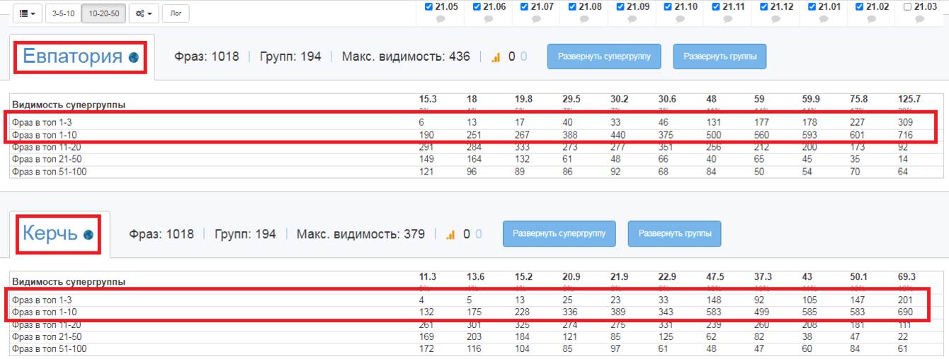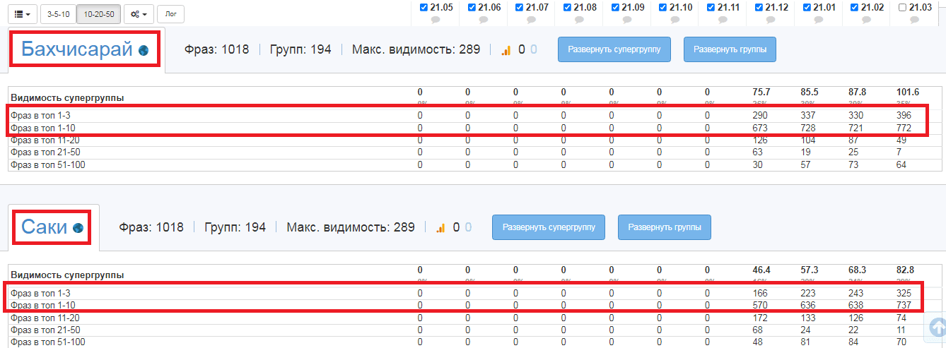Через 8 месяцев заняли стабильное 4-е место по видимости в Симферополе.