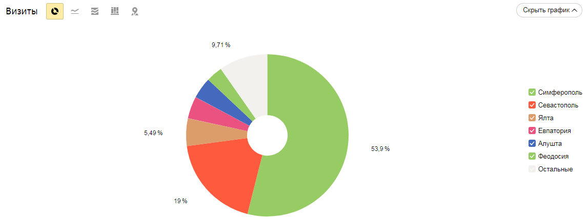 Оставшиеся 27,1 % трафика приходятся на другие города полуострова Крым и также приносят продажи интернет-магазину.