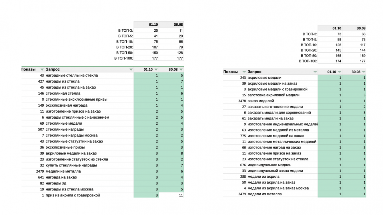 Конкуренция с крупнейшими маркетплейсами и вывод всех категорий сайта в ТОП-10;