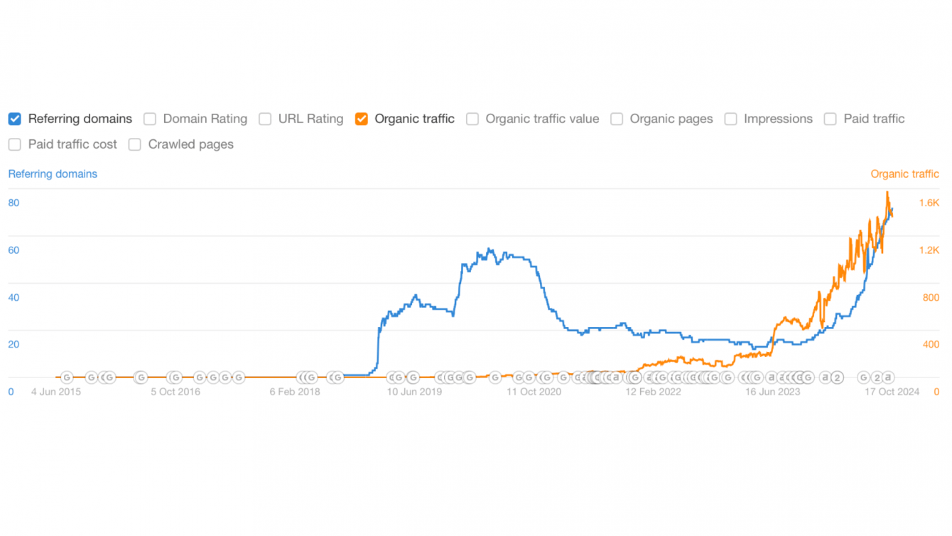 Далее был проведен полный аудит основных конкурентов, сформирована понятная стратегия регулярного продвижения. Были выбраны целевые группы ключей с низкими показателями KD Ahrefs (сложности продвижения). Помошник SEO-специалиста выгрузил все ссылки конкурентов, которые позже были проанализированы на 10+ показателей качества. Лучшие площадки были добавлены к нам в базу для дальнейшего размещения наших ссылок.