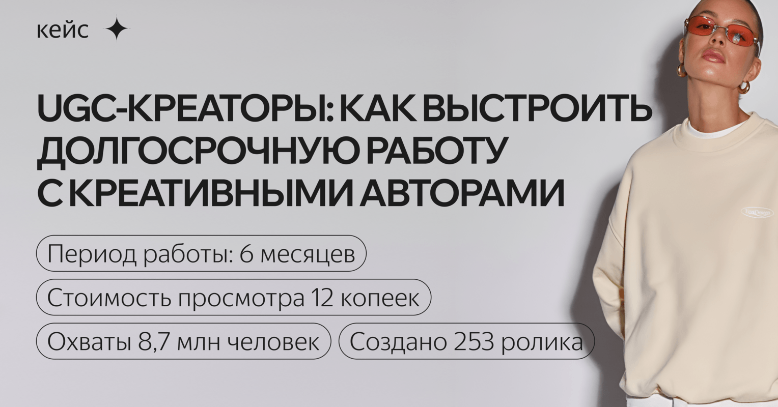 Креативный контент — не только тренд этого года, но уже и необходимость. Если вы хотите работать над узнаваемостью бренда, но не знаете как перестроиться с классических интеграций у блогеров, то работа с авторами — подходящий инструмент, который позволит нативно вписывать ваш продукт в контент блогера, обеспечит вам большое количество охватов и дешевую стоимость просмотра.