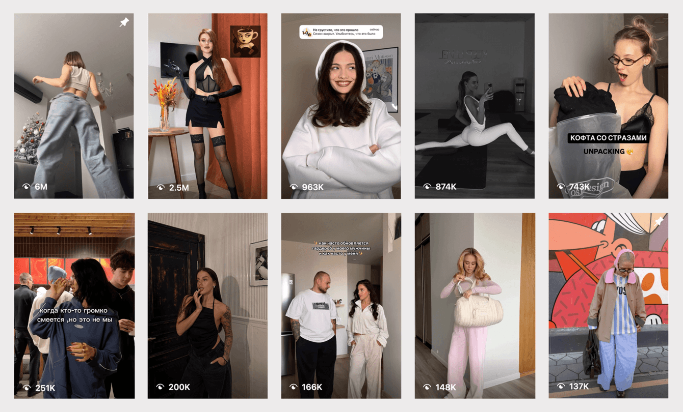 Ролики, набравшие наибольшее количество просмотров (некоторые набирают просмотры до сих пор). * Принадлежит Instagram — проект Meta Platforms Inc., деятельность которой в России запрещена