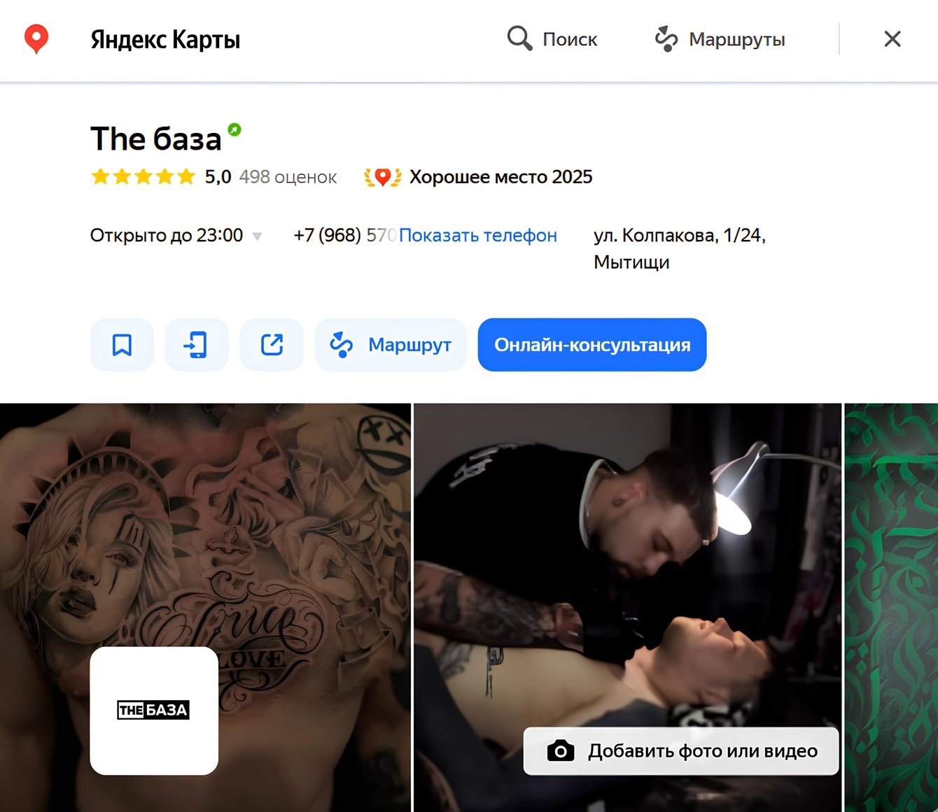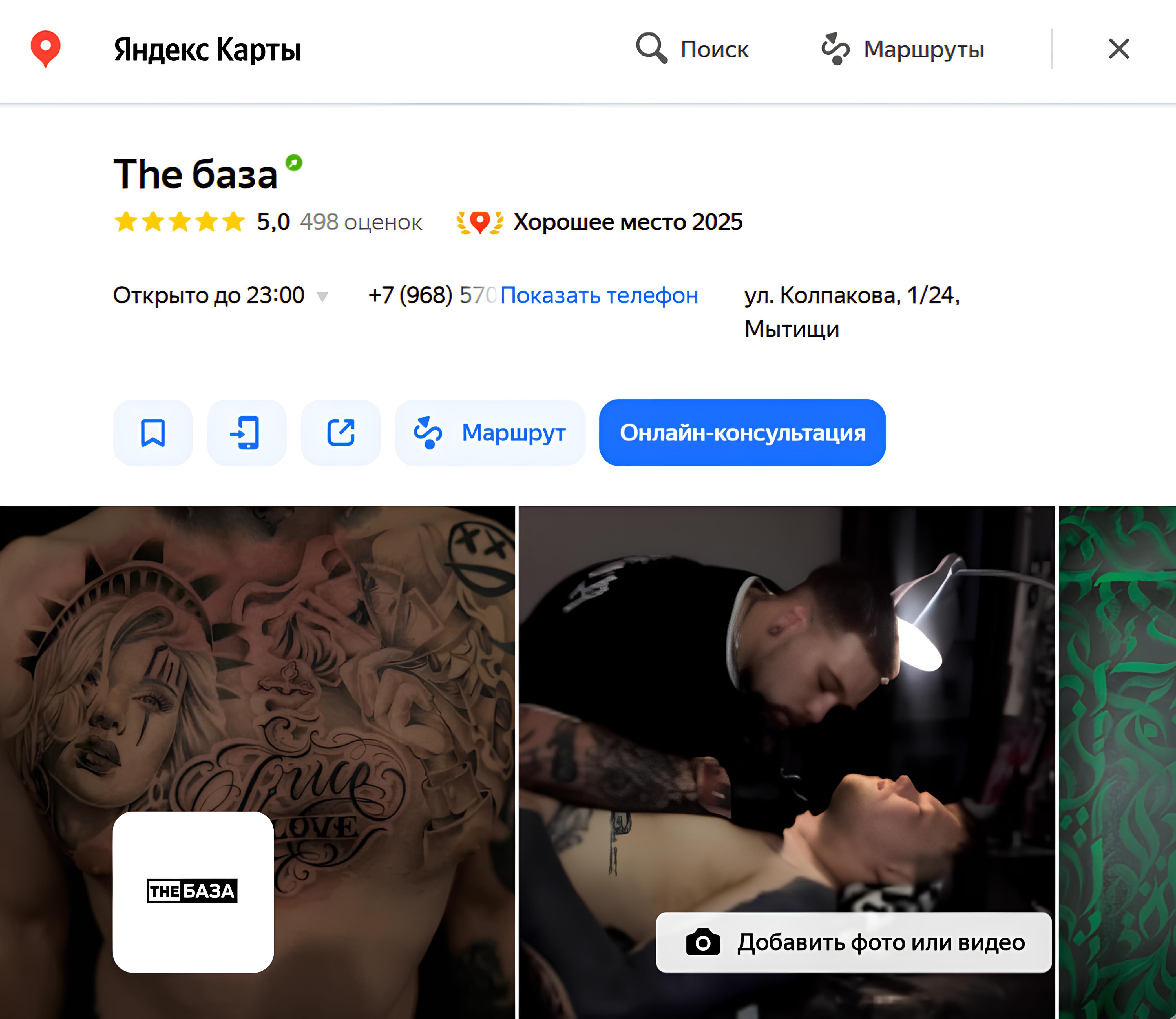 На старте не было ни одной карточки на картах — всё создавалось с нуля. Задача усложнялась тем, что нужно было продвигать сразу два направления в одной карточке: тату и барбершоп.