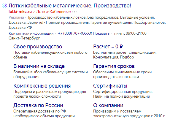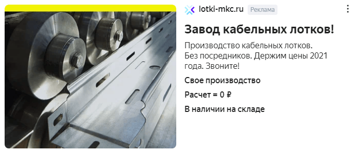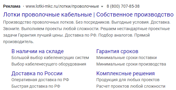 3. Так как тематика производства кабельных лотков имеет ярко выраженных крупных конкурентов, мы в обязательном порядке проработали по ним запросы и стали по ним рекламироваться. Эффект от таких рекламных кампаний на старте, конечно, меньше, но тем не менее они тоже приносят заявки. Дополнительно такие рекламные кампании способствуют узнаваемости бренда МКС.