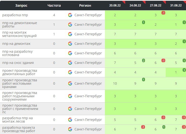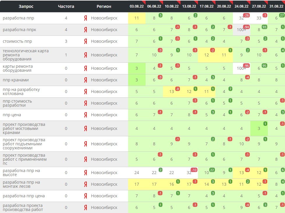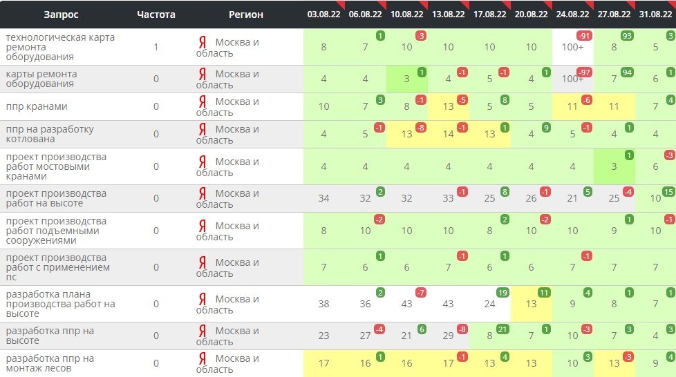 К середине 2022 года мы вывели сайт в ТОП-10, а по некоторым позициям в ТОП-3 поисковых систем по всем крупным городам России. Не будем приводить их все, картина там примерно одинаковая.
