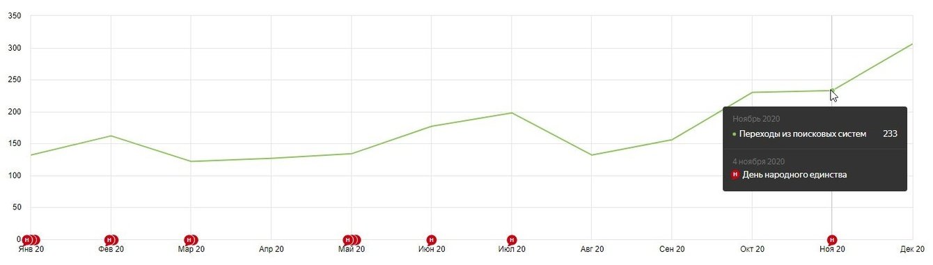 Уровень трафика из поисковых систем был достаточно низким для бизнеса, который работает по всей стране. Общее количество поискового трафика на ноябрь 2020 года не превышало 235 визитов в месяц.