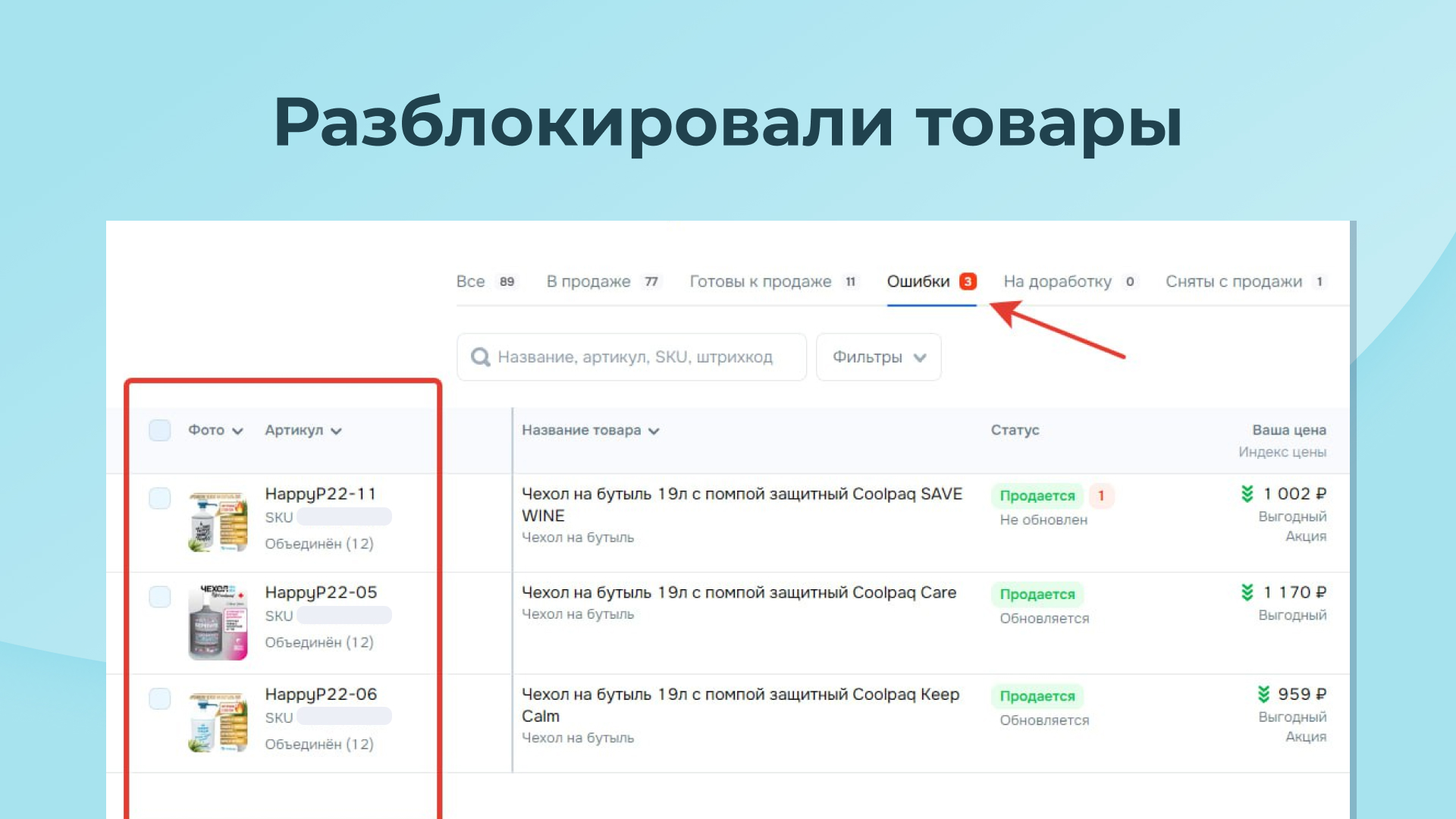 Все названия товаров и описания были однотипные. Подобрали ключевые запросы, скорректировали названия и описания.