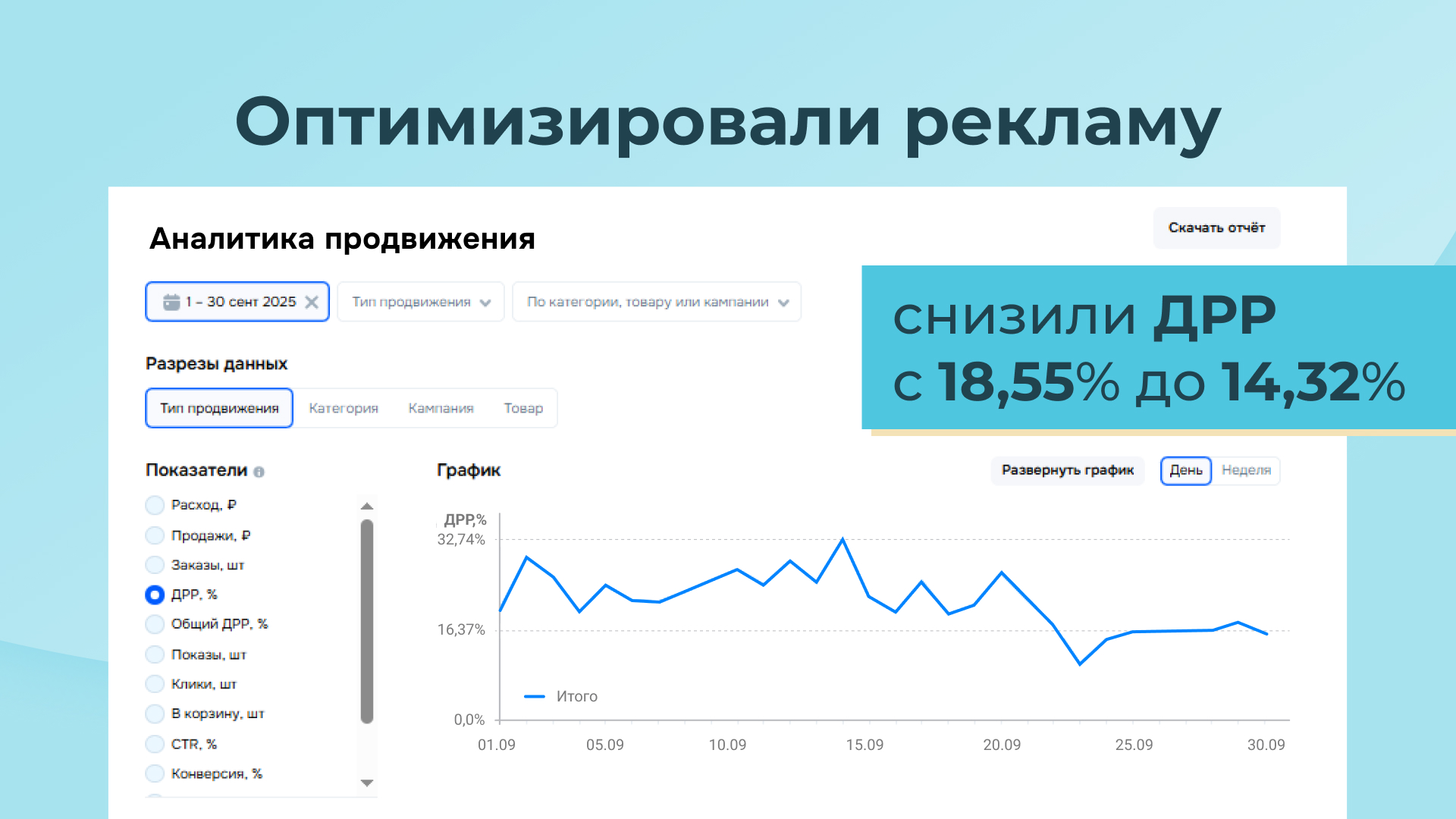 — Снизили ДРР с 18,55% до 14,32%